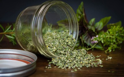 Coloque 02 colheres de sopa de alecrim, manjericão, orégano, salsinha